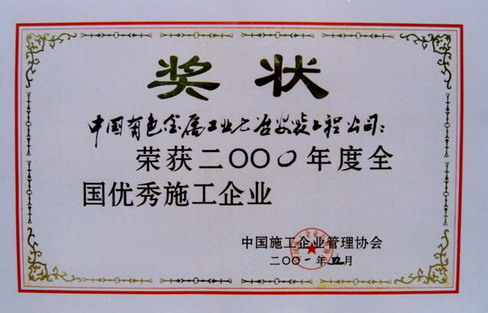 全国优秀施工企业2000年